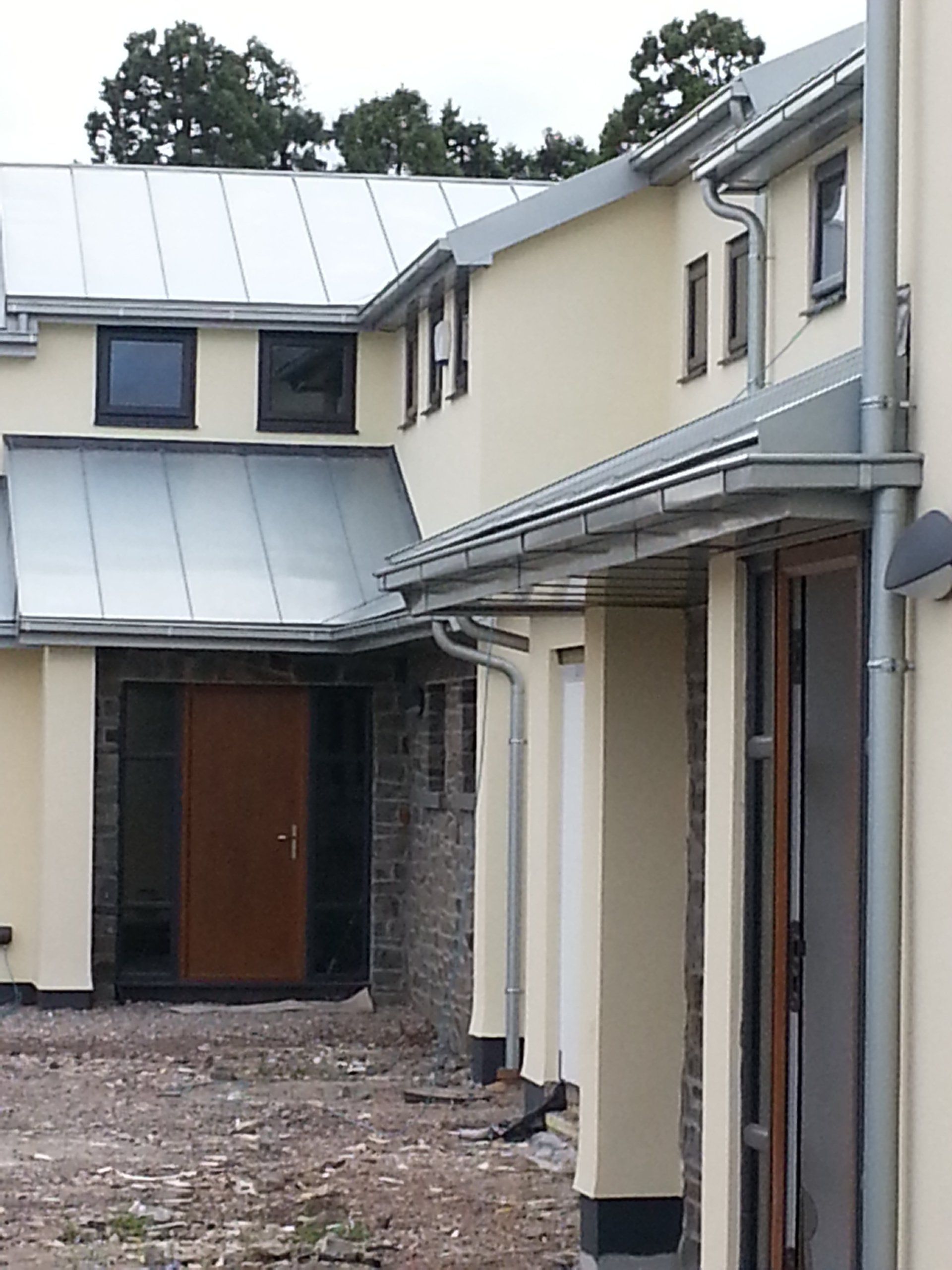 Following the successful completion of works to the client’s own home Oriel Architects were appointed to design two new dwellings for a son and daughter. The are designed to follow an agricultural aesthetic with render and stone walls topped with zinc clad roofs.